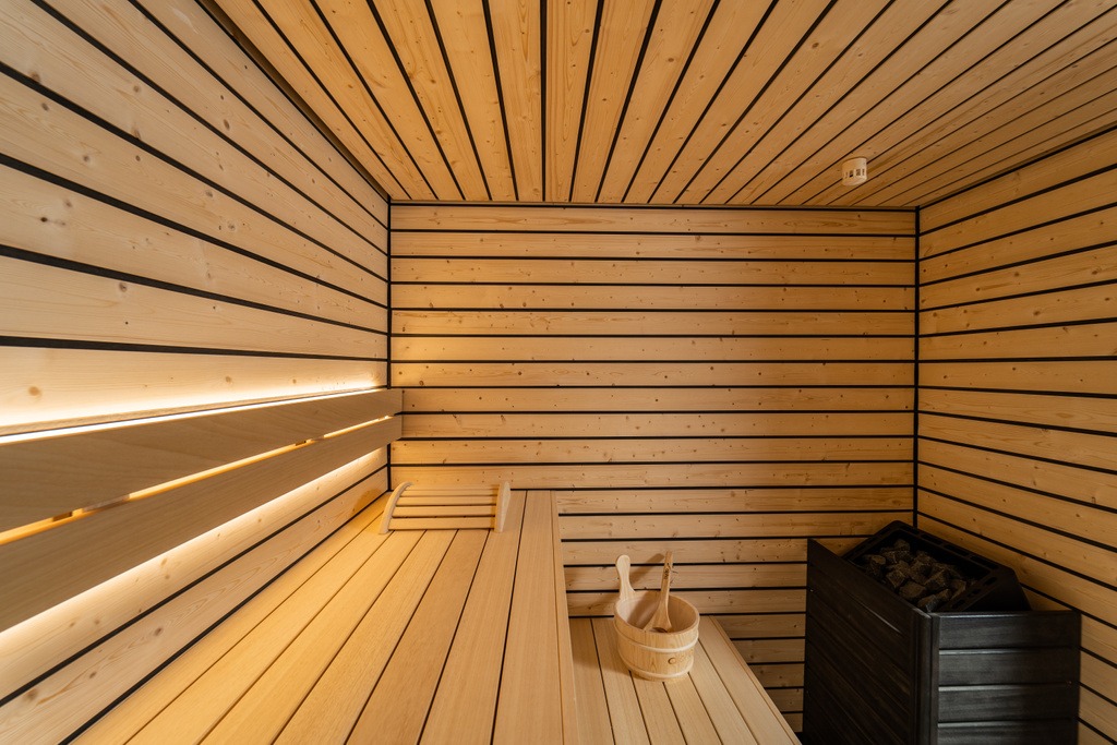 Découvrez le sauna Schruns, un modèle élégant d’Alpha Wellness qui combine la tradition des saunas finlandais et une finition moderne. Fabriqué en pin scandinave dense, il dégage une odeur naturelle apaisante, tandis que ses lamelles noires et sa grille de poêle noire lui donnent un style contemporain.