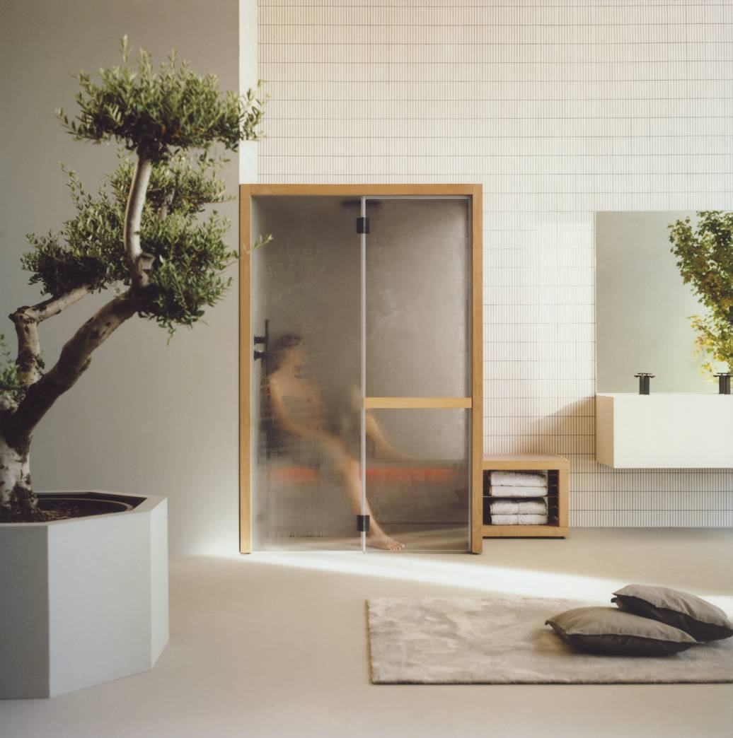 Le générateur de vapeur Nuvola produit une vapeur dense et homogène, pour une expérience relaxante et apaisante. La paroi vitrée satinée et l’éclairage LED intégré créent une ambiance lumineuse agréable.